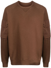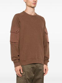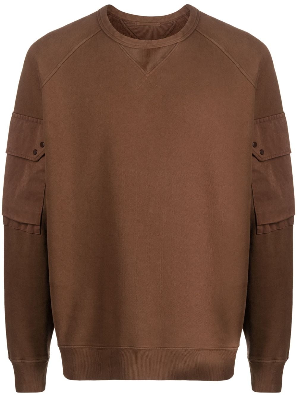 logo-applique panelled cotton sweatshirt Highlights - Chestnut brown - Cotton - Garment dyed - Panelled design - Applique logo - Ribbed detailing - Crew neck - Long raglan sleeves - Two sleeve cargo pockets - Ribbed cuffs and hem Made in Italy Composition Cotton 100%, Polyester 60%, Polyamide 40% SIZE & FIT Model measurements Height 6 ft 1 in(1.86 m) Bust/Chest 37.4 in(95 cm) Hips 36.22 in(92 cm) Waist 29.52 in(75 cm) FittingInformation Designed for a relaxed fit, this piece allows for comfort and movement when worn The ribbed hem offers a close, comfortable fit Made from a midweight non-stretch fabric, this piece offers minimal elasticity when worn This piece fits true to size – take your usual size Washing instructions Machine Wash