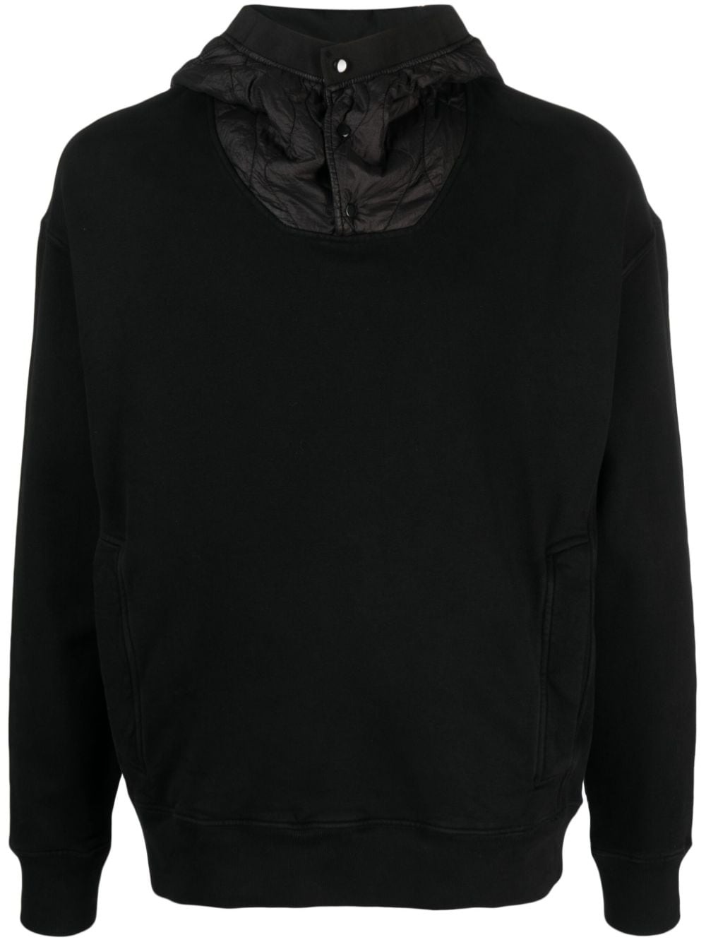 logo-patch cotton hoodie Highlights - Core black - Cotton - Logo patch to the rear - Classic hood - Front press-stud fastening - Drop shoulder - Long sleeves - Two side welt pockets - Ribbed cuffs and hem Made in Italy Composition Cotton 100%, Polyester 82%, Polyamide 18% Washing instructions Machine Wash