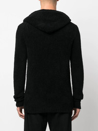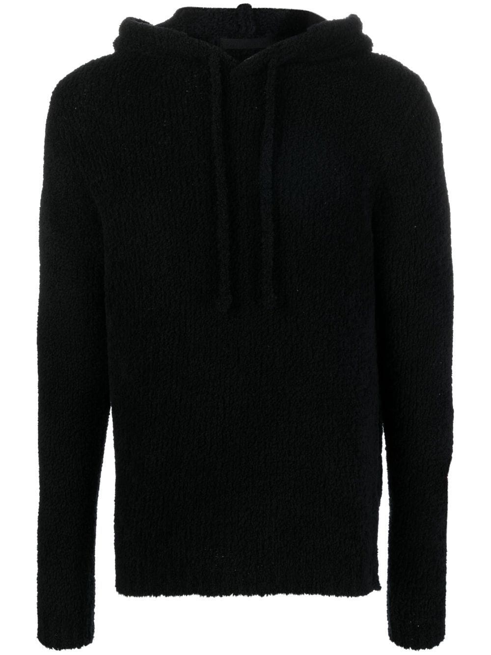 sherpa wool-blend hoodie black wool blend textured finish slouchy drawstring hood drop shoulder long sleeves pullover design Made in Italy Composition Wool 90%, Polyamide 10% SIZE & FIT Model measurements Height 6 ft 1 in(1.86 m) Bust/Chest 37.4 in(95 cm) Hips 34.64 in(88 cm) Waist 29.13 in(74 cm) FittingInformation This piece fits true to size. We recommend you get your regular size Cut for a relaxed fit Made with a mid-weight fabric