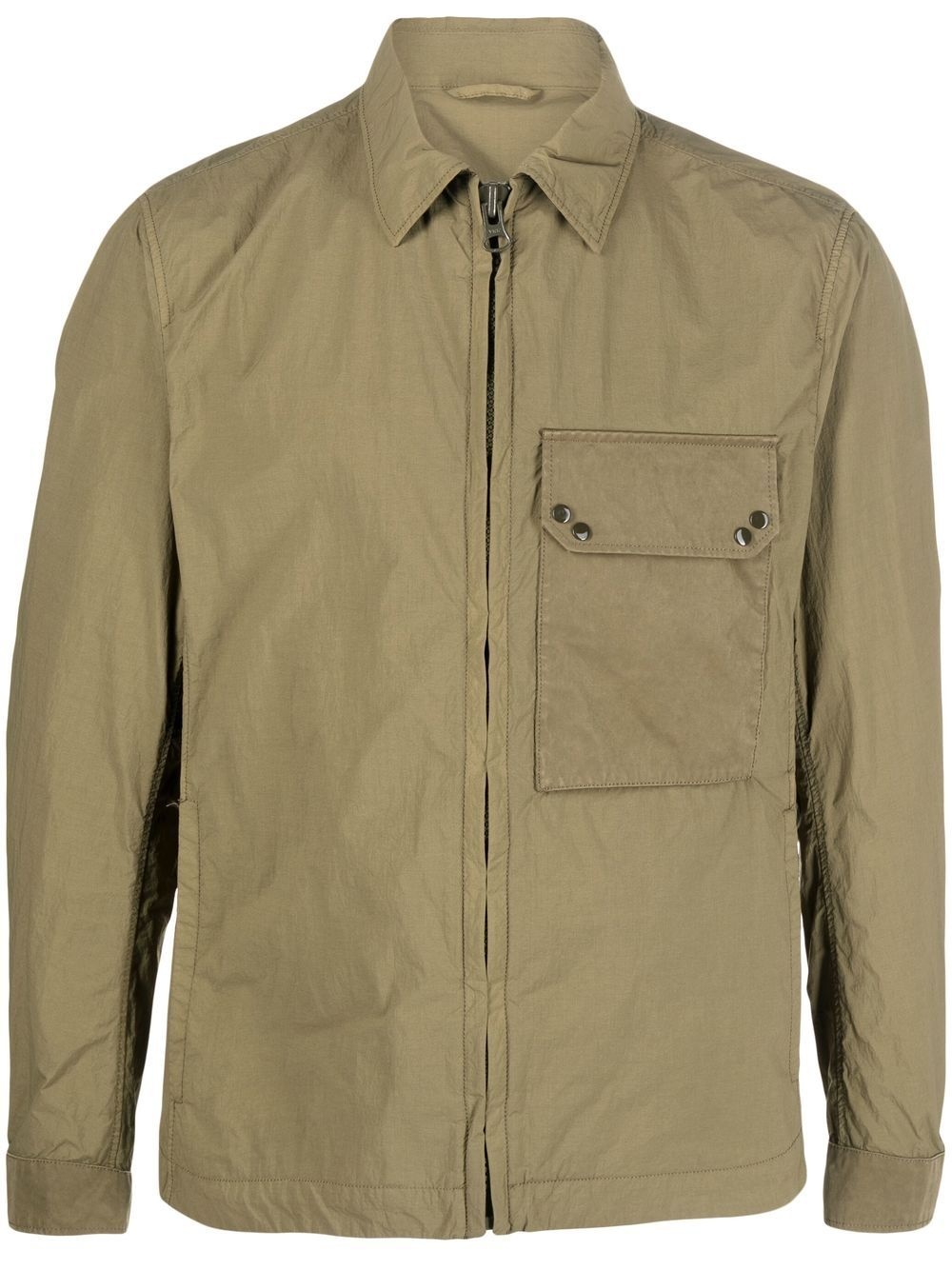zip-fastening shirt jacket green cotton classic collar chest flap pocket front zip fastening long sleeves straight hem Made in Italy Composition Lining: Cotton 100% Outer: Polyamide 100% SIZE & FIT Model measurements Height 6 ft 2 in(1.87 m) Bust/Chest 35.82 in(91 cm) Hips 35.43 in(90 cm) Waist 27.95 in(71 cm) FittingInformation This piece fits true to size. We recommend you get your regular size Cut for a slim fit Made with a lightweight non-stretch fabric