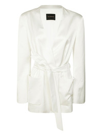 Wes tie-waist blazer Highlights - White - Self-tie belt - Front patch pockets Imported Composition Fabric 100% Washing instructions Read Manufacturer Guidelines