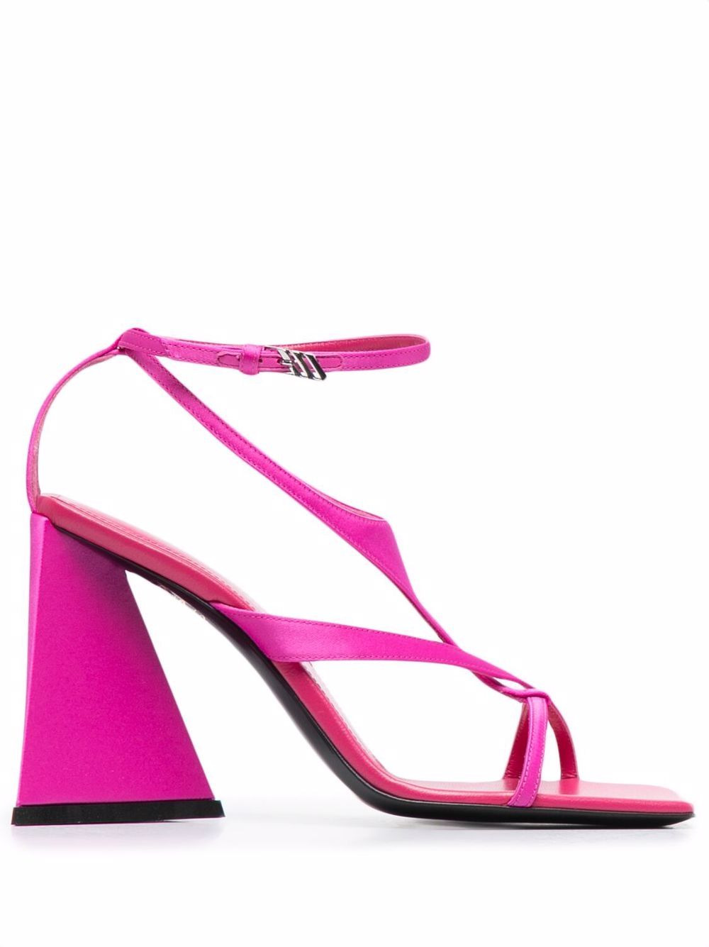 100mm strappy sandals Inspired by the concept of treasure-filled attics, The Attico doesn't shy away from a more-is-more aesthetic. Presented in a fuchsia pink hue, these high-heel sandals combine leather and satin for a luxurious look. Made in Italy Composition Outer: Polyester 100% Lining: Goat Skin 100% Sole: Leather 100% SIZE & FIT Measurement CIRCUMFERENCE 9.05 in(23 cm) HEEL 3.93 in(10 cm) HEIGHT 3.14 in(8 cm)