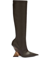 105mm Cheope knee-high boots Highlights - Brown - Pointed toe - High heel - Geometric heel - Knee-high shaft Made in Italy Composition Outer: Polyurethane 70%, Polyester 30% Sole: Leather 100% Lining: Polyurethane 100% SIZE & FIT Measurement HEEL 4.13 in(10.5 cm)