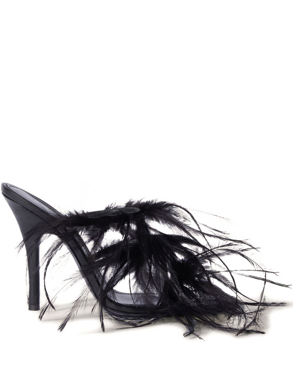 105mm feather-embellished stiletto sandals Highlights - Black - Stiletto heel - Feather embellishment - Ankle wrap - Open toe Made in Italy Composition Outer: Sheepskin 100%, Emu Feathers 100% Lining: Goat Skin 100% Sole: Bovine Leather 100% SIZE & FIT Measurement HEEL 4.13 in(10.5 cm)
