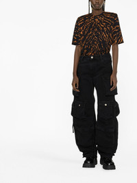 abstract-pattern T-shirt In an orange and black abstract pattern, this T-shirt by The Attico is an ode to the label's opulent, yet minimalist side. Its logo is subtly printed throughout the garment for a branded finish. Highlights - Black/dark orange - Cotton - Abstract pattern print - Logo print to the front - Round neck - Short sleeves - Straight hem Imported Composition Cotton 100% SIZE & FIT Model measurements Height 5 ft 10 in(1.79 m) Bust/Chest 31.1 in(79 cm) Hips 35.03 in(89 cm) Waist 24.01 in(61 cm) FittingInformation Designed for a relaxed fit, this piece allows for comfort and movement when worn Made from a midweight non-stretch fabric, this piece offers minimal elasticity when worn This piece fits true to size – take your usual size Washing instructions Machine Wash