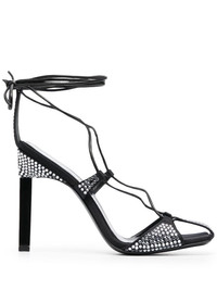 Adele 105mm crystal-embellished sandals The Attico's sandals are updated with a crystal-embellished upper. Set on a high stiletto heel, it has a lace-up design and square toe for a contemporary finish. Made in Italy Composition Outer: Fabric 100%, Calf Leather 100% Lining: Calf Leather 100%, Fabric 100% Sole: Calf Leather 100% SIZE & FIT Measurement HEEL 4.13 in(10.5 cm)