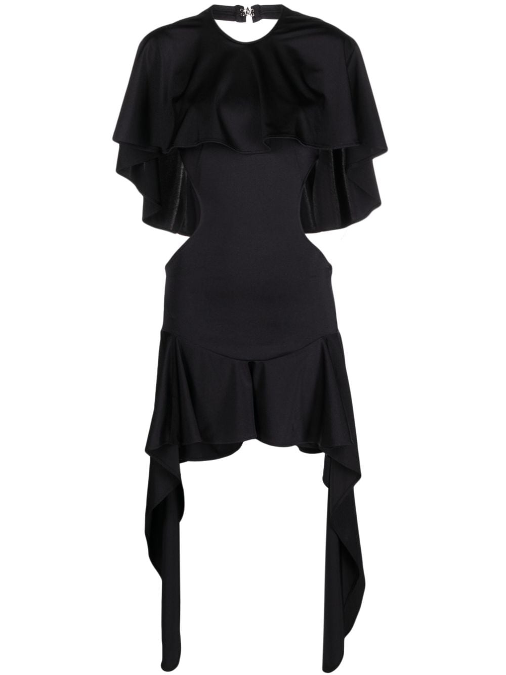 Airi cape-effect cut-out minidress The Attico updates its Airi minidress in an understated black iteration. This cape-design is free from bold prints the brand is known for and is detailed with revealing waist and rear cut-outs. The ruffled draped sides create subtle movement with each step. Highlights - Black - Round neck - Cape design - Cut-out detailing - Draped detailing - Concealed rear hook and zip fastening Made in Italy Composition Polyester 80%, Spandex/Elastane 20% SIZE & FIT Model measurements Height 5 ft 11 in(1.8 m) Bust/Chest 31.49 in(80 cm) Hips 35.82 in(91 cm) Waist 24.8 in(63 cm) FittingInformation Designed for a close fit throughout Made from a midweight stretch fabric, this piece offers elasticity and flexibility when worn This piece fits true to size – take your usual size Measurement HIPS 30 in(76.2 cm) LENGTH 29.48 in(74.9 cm) WAIST 24.01 in(61 cm) BUST 24.01 in(61 cm) Washing instructions Machine Wash