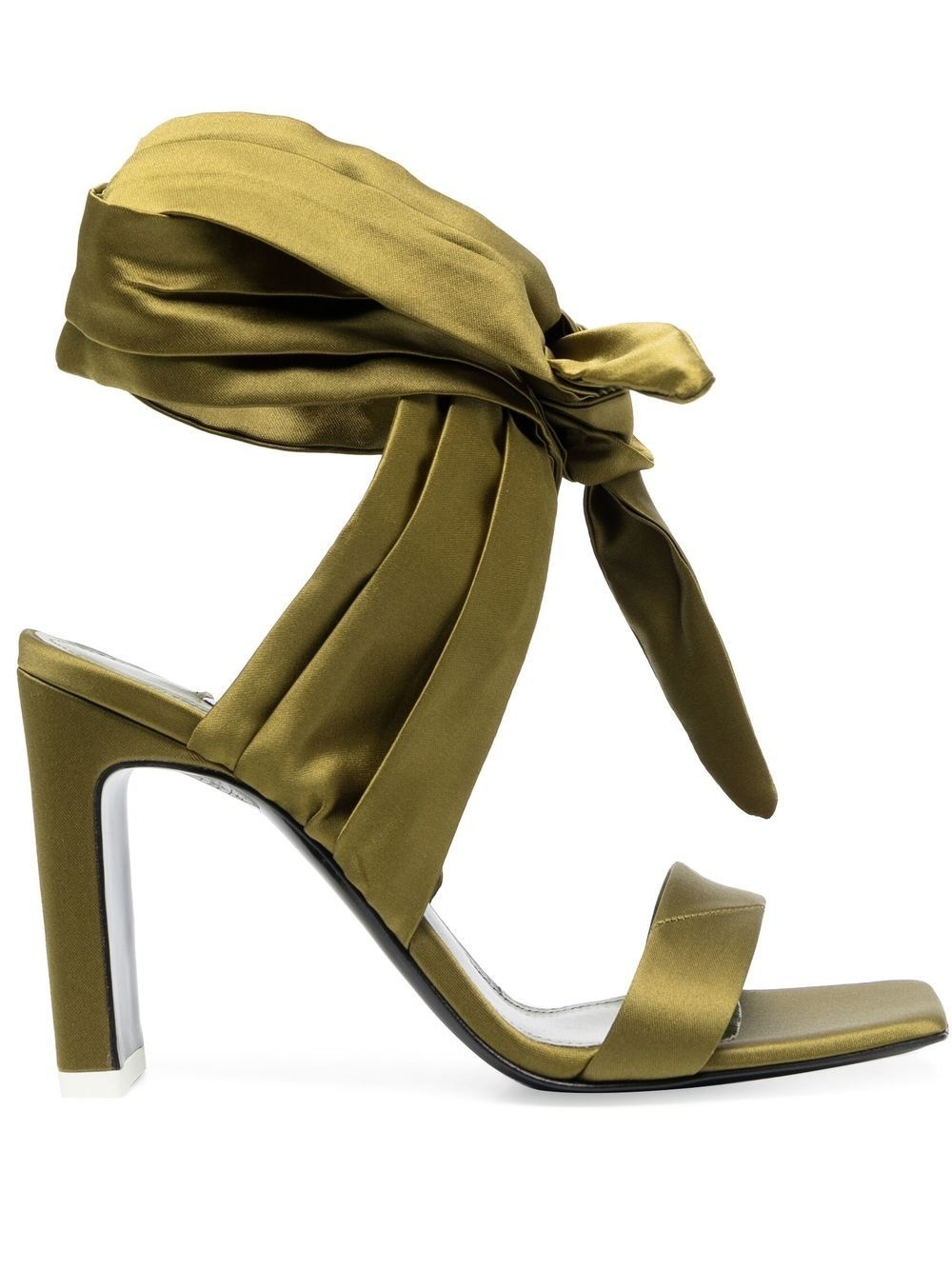 ankle-tie sandals Showing the brand's bold style, these flat sandals from The Attico feature in a green satin construction. This pair has an open square-toe and sits atop a high heel. Made in Italy Composition Lining: Leather 100% Sole: Leather 100% Outer: Satin 100% SIZE & FIT Measurement HEEL 3.93 in(10 cm)