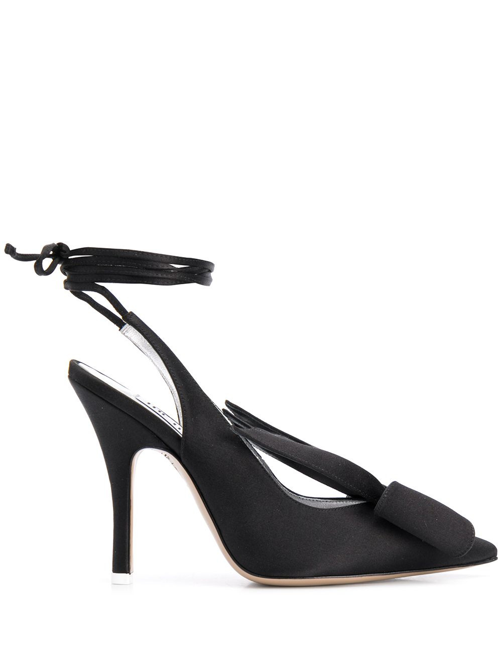 ankle-wrap satin pumps Black ankle-wrap satin pumps from The Attico featuring a pointed toe, a high stiletto heel, a bow detail, a leather sole and wrap-around ankle ties. Made in Italy Composition Lining: Calf Leather 100%, Satin 100% Sole: Calf Leather 100% Outer: Satin 100% SIZE & FIT Measurement HEEL 4.72 in(12 cm)