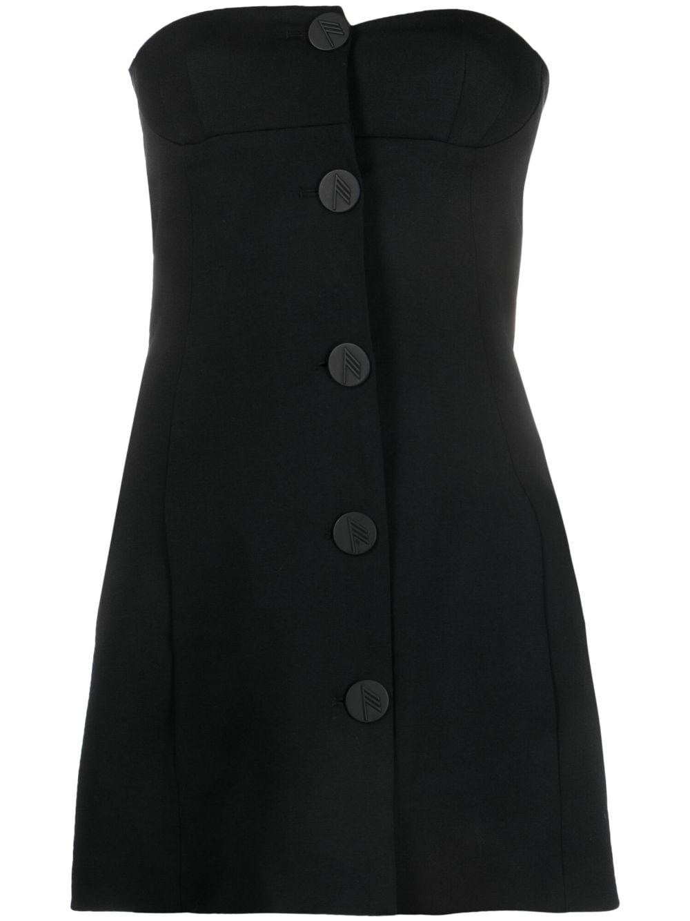 asymmetric buttoned minidress Spun from a stretch blend of virgin wool in Italy, this black minidress from The Attico reflects the brand's contemporary and bold take on garments. Cut to a silhouette-hugging fit, this asymmetric design boasts a sweetheart neckline whilst fastening at the front with oversized tonal buttons. Highlights - Black - Virgin wool blend - Asymmetric design - Strapless - Sweetheart neck - Front button fastening - Thigh-length Made in Italy Composition Outer: Virgin Wool 98%, Elastane 2% Lining: Cupro 100% SIZE & FIT Model measurements Height 5 ft 10 in(1.79 m) Bust/Chest 31.1 in(79 cm) Hips 35.03 in(89 cm) Waist 24.01 in(61 cm) FittingInformation Designed for a close fit throughout The internal bodice offers support and shape This piece fits true to size – take your usual size