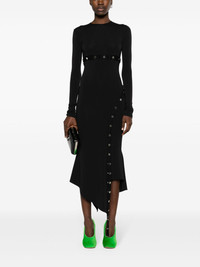 asymmetric convertible midi dress The Attico’s penchant for inventive silhouettes is demonstrated with this asymmetric midi dress. It’s punctuated with detachable panels for a custom look. Highlights - Jet black - Cotton blend - Stretch-jersey - Asymmetric design - Grosgrain ribbon trim - Detachable panels - Crew neck - Front press-stud fastening - Rear press-stud fastening - Concealed rear zip fastening - Long sleeves - Unlined - High-low hem Made in Italy Composition Cotton 99%, Acetate 75%, Polyamide 20%, other fibers 5%, Polyester 1% SIZE & FIT Model measurements Height 5 ft 11 in(1.8 m) Bust/Chest 32.67 in(83 cm) Hips 36.22 in(92 cm) Waist 24.4 in(62 cm) FittingInformation Designed for a close fit throughout Made from a midweight non-stretch fabric, this piece offers minimal elasticity when worn This piece fits true to size – take your usual size Measurement SLEEVE LENGTH 25.98 in(66 cm) HIPS 25.98 in(66 cm) LENGTH 52.99 in(134.6 cm) WAIST 20 in(50.8 cm) BUST 25.98 in(66 cm) Washing instructions Hand Wash