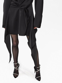 asymmetric cut-out satin minidress The Attico adds an alluring twist to the shirting silhouette of this black satin dress in the form of a covert teardrop cut-out at the decolletage. The twisted tied front creates elegant drape through the bodice to mimic the waterfall hem. Highlights - Black - Satin finish - Wrap design - Twist detailing - Cut-out detailing - Draped detailing - Round neck - Long sleeves - Asymmetric hem Made in Italy Composition Polyester 100% SIZE & FIT Model measurements Height 5 ft 10 in(1.77 m) Bust/Chest 27.95 in(71 cm) Hips 33.85 in(86 cm) Waist 23.22 in(59 cm) Measurement SLEEVE LENGTH 18.89 in(48 cm) LENGTH 31.88 in(81 cm) BUST 36.22 in(92 cm) FittingInformation Designed for a slim fit that sits just away from the body offering a close yet comfortable fit Made from a midweight non-stretch fabric This piece fits true to size – take your usual size
