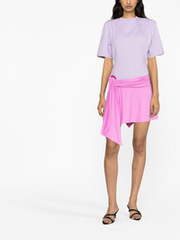 asymmetric mini skirt Evoking The Attico's signature bold aesthetic, this bubblegum-pink skirt is defined by its asymmetric silhouette. The wrap-style waistband is detailed with a matching O-ring that creates ruching and artful draping. Highlights - Bubblegum pink - Stretch-design - Ring hardware detailing - Ruched detailing - Asymmetric hem - Thigh-length Made in Italy Composition Outer: Polyamide 90%, Spandex/Elastane 10% Lining: Polyamide 84%, Spandex/Elastane 16% SIZE & FIT Model measurements Height 5 ft 10 in(1.78 m) Bust/Chest 31.49 in(80 cm) Hips 35.03 in(89 cm) Waist 23.62 in(60 cm) Measurement HIPS 24.01 in(61 cm) LENGTH 17.51 in(44.5 cm) WAIST 27.99 in(71.1 cm) Washing instructions Machine Wash