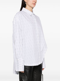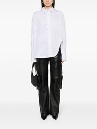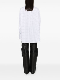 asymmetric striped shirt Highlights - White/black - Cotton - Poplin texture - All-over logo print - Vertical stripe pattern - Straight-point collar - Front button fastening - Long sleeves - Buttoned cuffs - High-low asymmetric hem Made in Italy Composition Cotton 100% SIZE & FIT Model measurements Height 5 ft 11 in(1.8 m) Bust/Chest 33.07 in(84 cm) Hips 37.4 in(95 cm) Waist 25.19 in(64 cm) FittingInformation Designed to be unstructured, offering a loose fit throughout Made from a midweight non-stretch fabric This piece fits true to size – take your usual size
