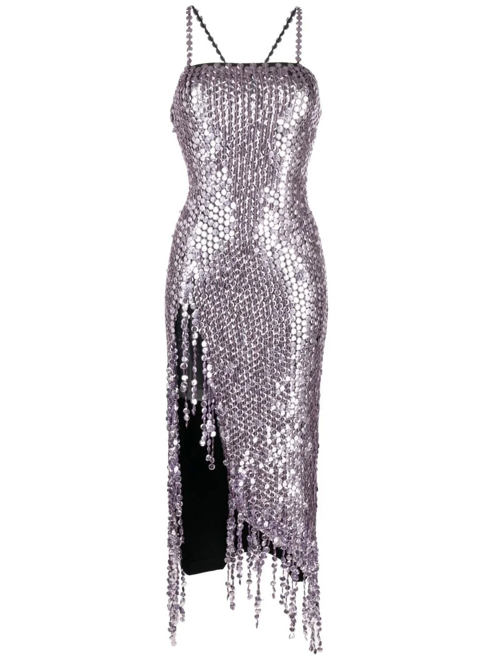 Avery pailette-embellished midi dress Renowned for their ebullient designs, The Attico presents this eye-catching pailette-embellished dress. Rendered in a lavender-purple hue, it boasts a halterneck and a contrasting black back for a contemporary finish. Highlights - Lavender purple - Stretch-design - Paillette embellishment - Square neck - Sleeveless - Crossover shoulder straps - Side slit - Contrasting back - Silver-tone hardware - Concealed rear zip fastening Made in Italy Composition Outer: PVC 100%, Polyamide 92%, Elastane 8% Lining: Polyamide 92%, Elastane 8% SIZE & FIT Model measurements Height 5 ft 9 in(1.76 m) Bust/Chest 33.07 in(84 cm) Hips 34.64 in(88 cm) Waist 25.59 in(65 cm) FittingInformation Designed for a close fit throughout Made from a midweight stretch fabric, this piece offers elasticity and flexibility when worn This piece fits true to size – take your usual size Washing instructions Hand Wash