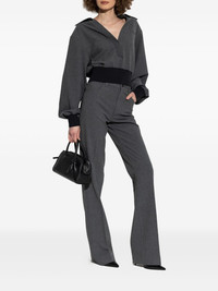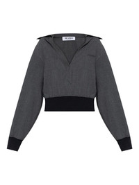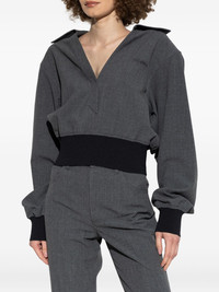 banded-cuff collared top Highlights - Dark grey - Collared neckline - Banded cuffs - Embroidered logo Made in Italy Composition Polyester 68%, Viscose 29%, Elastane 3% Washing instructions Read Manufacturer Guidelines
