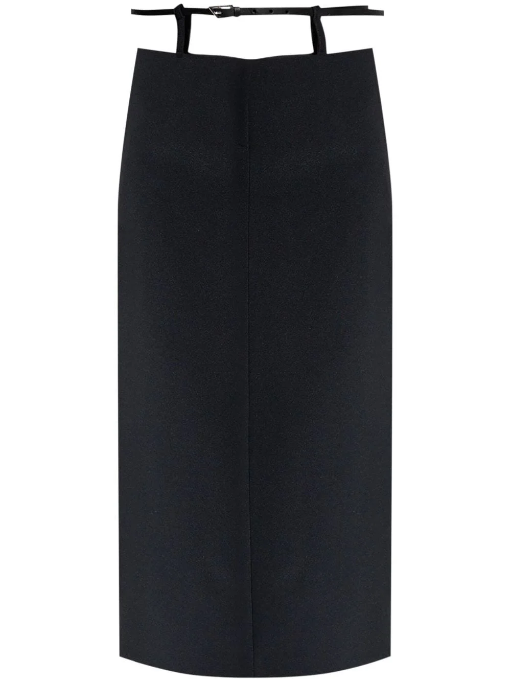 belted midi skirt Highlights - Black - Crepe texture - Pencil silhouette - Belted waist - High-waisted - Concealed front fastening - American rear vent - Straight hem - Mid-length Made in Italy Composition Outer: Polyester 90%, Elastane 10% Lining: Viscose 100% Washing instructions Read Manufacturer Guidelines