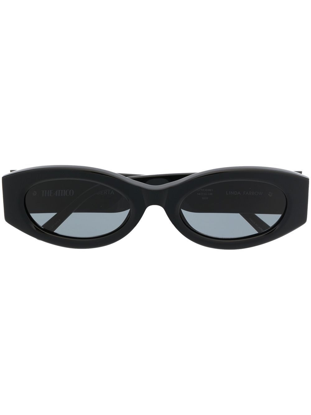 x Linda Farrow Berta rectangle-frame sunglasses These sunglasses from Linda Farrow and The Attico boast a sleek rectangle-frame silhouette that is accented with a silver-tone logo plaque to the arm for a branded finish. Highlights - Black - Acetate - Rectangle frame - Tinted lenses - Silver-tone logo plaque - Straight arms - Curved tips - These glasses come with a protective case. Made in Italy Composition Acetate 100% SIZE & FIT Measurement Arm Length 5.51 in(14 cm) Bridge Width 0.86 in(2.2 cm) Lens Diameter 2.12 in(5.4 cm) Total Width 5.9 in(15 cm)