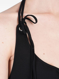 button-detail asymmetrical top Highlights - Black - Halter neckline - Adjustable tie details - Off-centre button closure - Asymmetric hemline Made in Italy Composition Fabric 100%