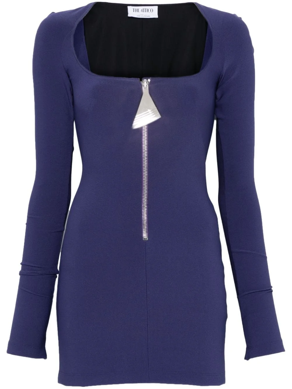scoop-neck mini dress Highlights - Dark violet blue - Cady texture - Short front zip fastening - Scoop neck - Branded zip puller - Long raglan sleeves - Fitted waistline - Full lining - Straight hem - Above-knee length Made in Italy Composition Polyester 90%, Elastane 10% SIZE & FIT Model measurements Height 5 ft 9 in(1.75 m) Bust/Chest 31.88 in(81 cm) Hips 34.64 in(88 cm) Waist 24.01 in(61 cm) FittingInformation Designed for a close fit throughout Slightly short in length; consider your own measurements Made from a midweight stretch fabric, this piece offers elasticity and flexibility when worn