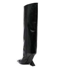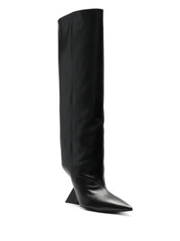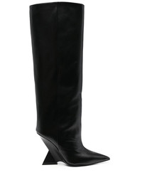 Cheope knee-high 105mm boots Punctuated by 'feats of embellishment, opulence and seduction meant to be collected in time', The Attico's SS23 collection is complete with this black iteration of the Cheope boots. Made in Italy from smooth calf leather, they boast a bold pyramid-shaped wedge heel for a geometric silhouette. Made in Italy Composition Outer: Calf Leather 100% Lining: Calf Leather 100% Sole: Calf Leather 100% SIZE & FIT Measurement CIRCUMFERENCE 13.38 in(34 cm) HEEL 4.33 in(11 cm)