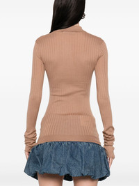 chunky-ribbed polo top Highlights - Camel brown - Short front button fastening - Ribbed cuffs and hem - Embroidered logo to the front - Extra-long sleeves Imported Composition Silk 100% SIZE & FIT Model measurements Height 5 ft 10 in(1.78 m) Bust/Chest 33.46 in(85 cm) Hips 36.22 in(92 cm) Waist 23.22 in(59 cm) FittingInformation Designed for a slim fit that sits just away from the body offering a close yet comfortable fit Made with a lightweight knit, this piece offers some stretch