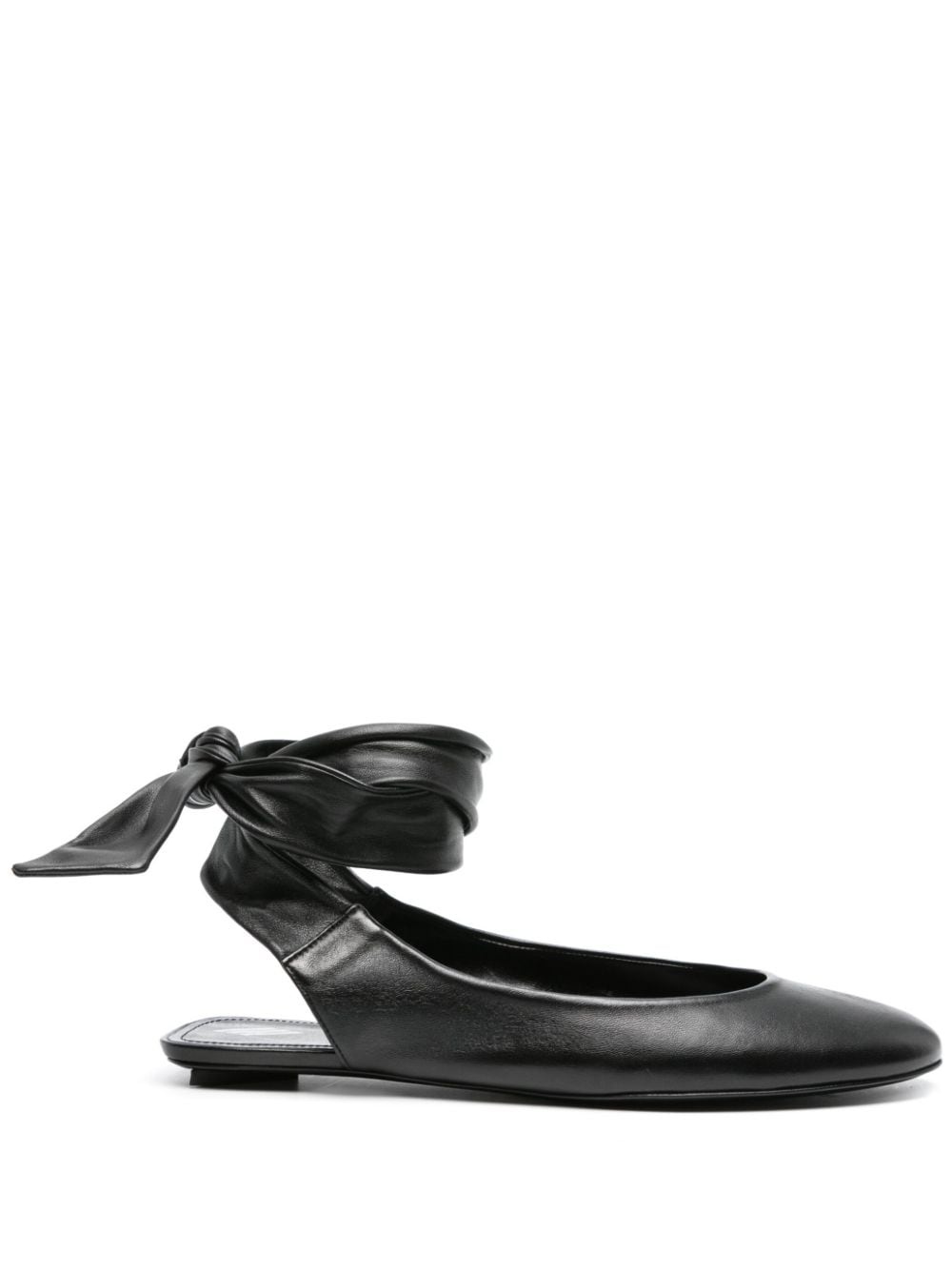 Cloe ballerina shoes The wide wraparound ankle straps on The Attico’s Cloe ballerina flats are reminiscent of authentic pointe styles. They’re crafted from supple black leather with an open back and slight heel. Highlights - Black - Calf leather - Grained texture - Tie-fastening ankle strap - Round toe - Branded leather insole - Leather outsole - Rubber sole - Low stacked heel Made in Italy Composition Outer: Calf Leather 100% Sole: Calf Leather 100%, Rubber 100% Lining: Calf Leather 100% SIZE & FIT Measurement HEEL 0.59 in(1.5 cm)