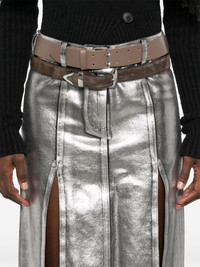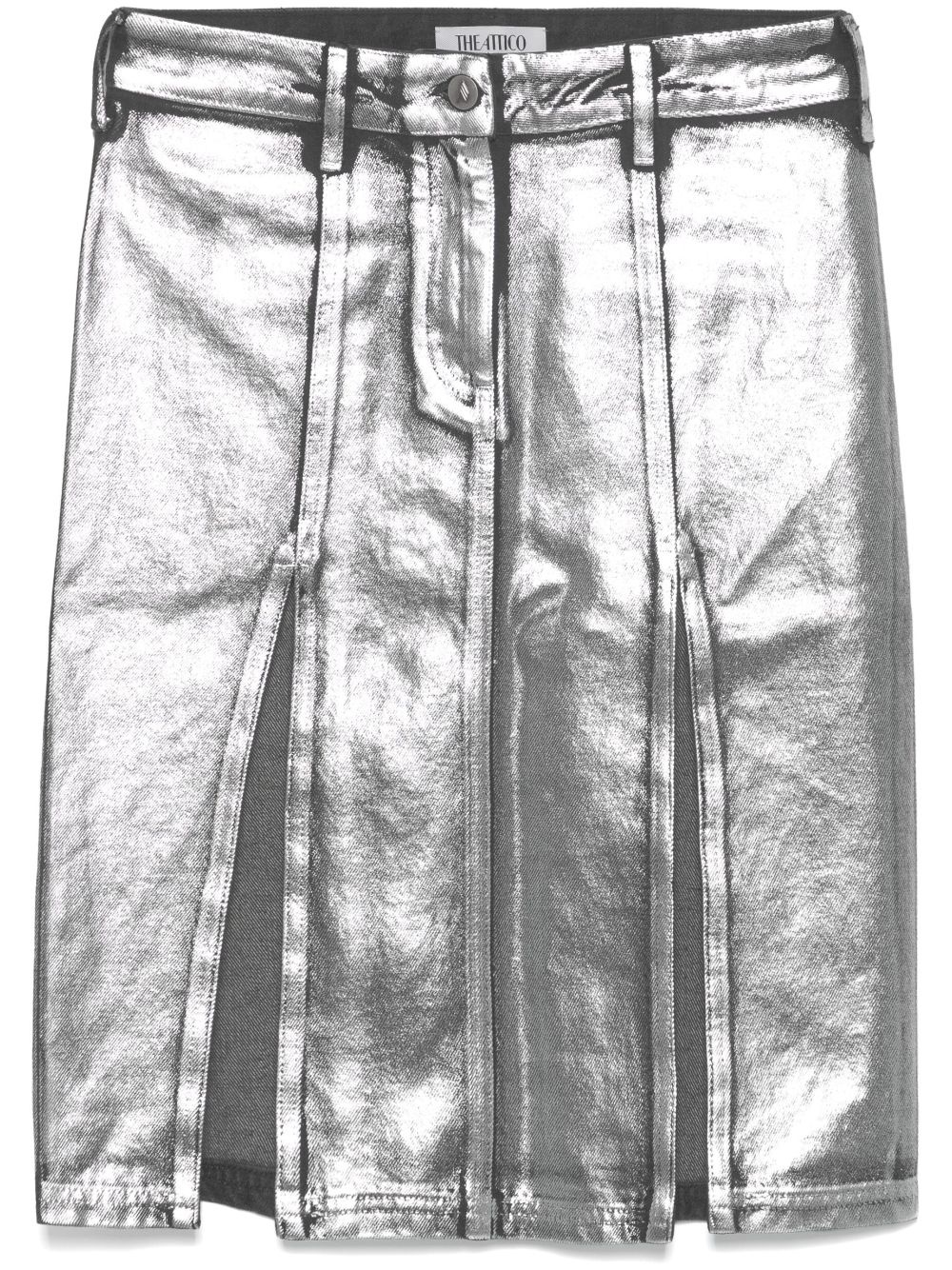 coated denim midi skirt Highlights - Silver-tone - Concealed fly and button fastening - Side slits - Two rear welt pockets Made in Italy Composition Outer: Cotton 100% Lining: Polyester 65%, Cotton 35% SIZE & FIT Model measurements Height 5 ft 10 in(1.77 m) Bust/Chest 32.28 in(82 cm) Hips 35.03 in(89 cm) Waist 25.19 in(64 cm) FittingInformation This midi-length skirt is intended to be worn low on the hips Sturdy and hard-wearing, this denim piece offers no stretch