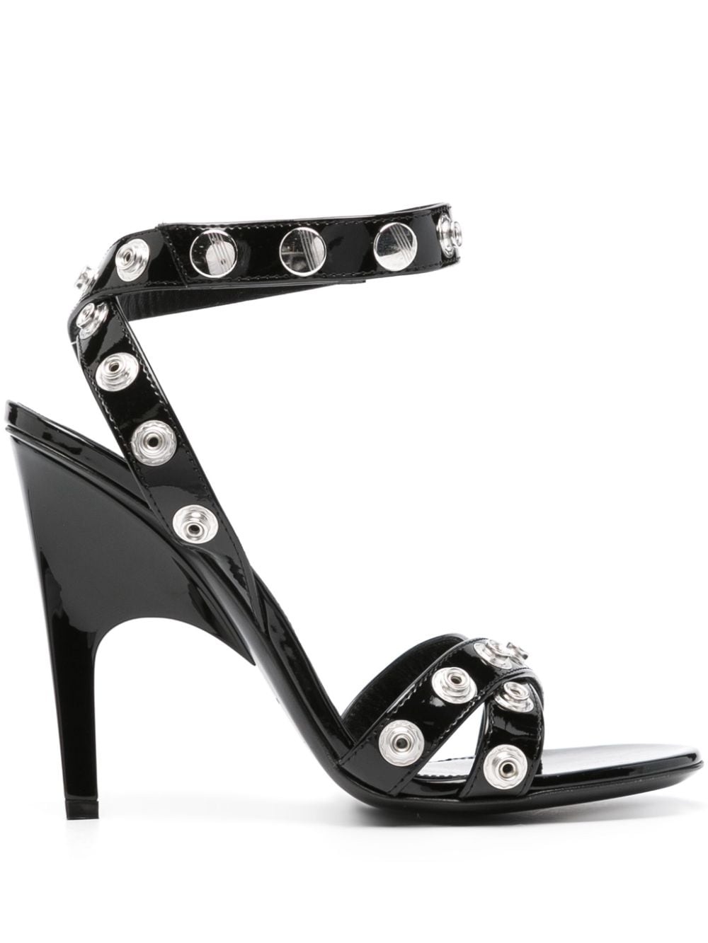 Cosmo 105mm faux-leather sandals Highlights - Black - Faux leather - Patent finish - Snap detailing - High stiletto heel - Branded leather insole - Round open toe - Ankle strap - Silver-tone hardware Made in Italy Composition Other fibres 100% SIZE & FIT Measurement HEEL 4.72 in(12 cm) HEIGHT 3.34 in(8.5 cm) Sole height 0.39 in(1 cm)
