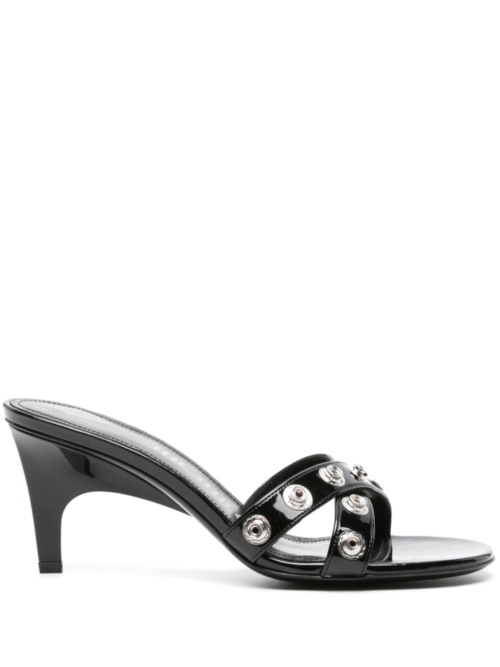 60mm Cosmo sandals Handcrafted from calf leather in a classic black hue, these Cosmo mules from The Attico show criss-cross front straps adorned with press studs. Highlights - Black - Calf leather - Patent finish - Silver-tone stud detailing - Slip-on style - Branded footbed - Round open toe - Crossover strap at the toe - 60mm mid heel Made in Italy Composition Sole: Calf Leather 100% Lining: Polyurethane 100%, Calf Leather 100% SIZE & FIT Measurement HEEL 3.14 in(8 cm)