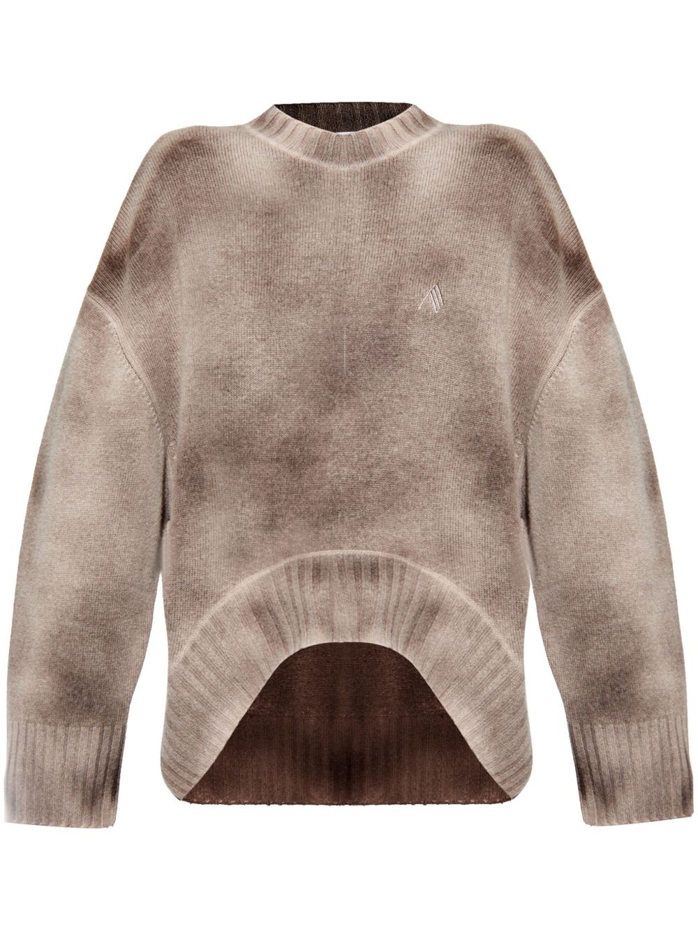 crew-neck sweater Highlights - Taupe - Crew neck - Curved hem - Ribbed detailing - Embroidered logo at the chest Imported Composition Wool 70%, Cashmere 30%