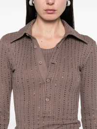 crystal-embellished polo top Highlights - Chocolate brown - Short front button fastening - Long sleeves - Straight hem Imported Composition Cotton 100% SIZE & FIT Model measurements Height 5 ft 9 in(1.76 m) Bust/Chest 32.28 in(82 cm) Hips 35.43 in(90 cm) Waist 25.19 in(64 cm) FittingInformation Designed for a close fit throughout Made from a midweight non-stretch fabric