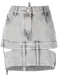 cut-out denim mini skirt Highlights - Light grey - Cotton - Washed denim - Tonal stitching - Cut-out detailing - Belt loops - Concealed fly and button fastening - Low-rise - Classic five pockets - Curved hem - Thigh-length Made in Italy Composition Lining: Polyester 65%, Cotton 35% Outer: Cotton 100% SIZE & FIT Model measurements Height 5 ft 10 in(1.78 m) Bust/Chest 30.7 in(78 cm) Hips 36.61 in(93 cm) Waist 24.8 in(63 cm) FittingInformation This mini-length skirt is intended to be worn low on the hips Sturdy and hard-wearing, this denim piece offers no stretch This piece fits true to size – take your usual size Washing instructions Hand Wash