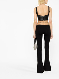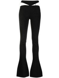 cut-out flared trousers The Attico puts a characteristically playful twist on these trousers for AW23. This design is modernised by cut-outs at the waist, whilst a flared silhouette lends it a '70s feel. Highlights - Black - Stretch-design - Cut-out detailing - Flared Made in Italy Composition Rayon 68%, Polyamide 27%, Elastane 5% SIZE & FIT Model measurements Height 5 ft 10 in(1.77 m) Bust/Chest 32.67 in(83 cm) Hips 35.43 in(90 cm) Waist 23.62 in(60 cm) FittingInformation Designed with a flared hem, these trousers allow for a close fit at the waist with a slim fit over the leg and widening towards the hem Made from a midweight stretch fabric, this piece offers elasticity and flexibility when worn This piece fits true to size – take your usual size Washing instructions Dry Clean Only