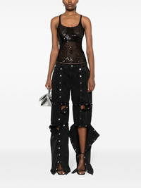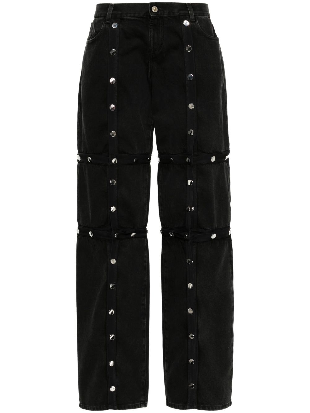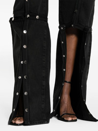 deconsructed low-rise jeans Highlights - Black - Cotton - Denim - Deconstructed design - Metal snaps - Low-rise - Classic five pockets - Belt loops - Concealed fly and button fastening - Wide leg Made in Italy Composition Lining: Polyester 65%, Cotton 35% Outer: Cotton 100% SIZE & FIT Model measurements Height 5 ft 11 in(1.8 m) Bust/Chest 31.49 in(80 cm) Hips 36.61 in(93 cm) Waist 24.4 in(62 cm) FittingInformation Designed with a wide leg cut, these jeans allow for a close fit at the waist and offer a loose and roomy fit over the leg Sturdy and hard-wearing, this denim piece offers no stretch This piece fits true to size – take your usual size Measurement FRONT RISE 10 in(25.4 cm) INSIDE LEG 35.51 in(90.2 cm) BACK RISE 12 in(30.5 cm) HIPS 42 in(106.7 cm) Hem Width 20.98 in(53.3 cm) WAIST 32.99 in(83.8 cm) Washing instructions Hand Wash