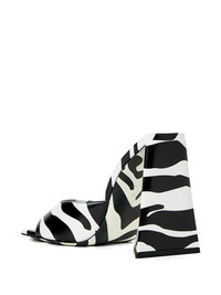 Devon 115mm zebra-print sandals Made from smooth Italian leather, the Devon mules by The Attice captures the brand's creative aesthetic. Decorated with an overall zebra print, the pair features a square toe and sits atop 115mm triangular sculpted heels. Highlights - White/black - Leather - Zebra print - Square toe - Open toe - Branded footbed - High sculpted heel - Slip-on style Made in Italy Composition Lining: Leather 100% Outer: Leather 100% Sole: Leather 100% SIZE & FIT Measurement HEEL 4.52 in(11.5 cm)