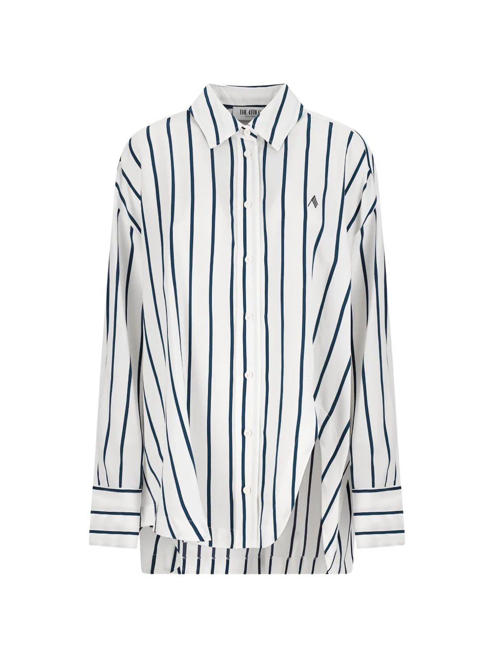 Diana striped shirt Highlights - White/blue - Striped pattern - Button fastening - Logo detail - Long sleeves - Buttoned cuffs - Classic collar - Asymmetric hem Made in Italy Composition Viscose 100% Washing instructions Read Manufacturer Guidelines