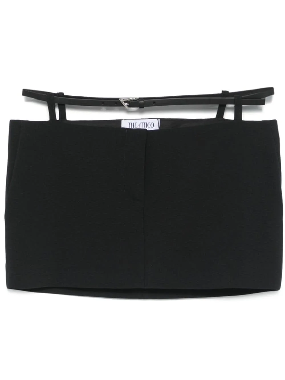 double-waisted mini skirt Highlights - Black - Textured finish - Double-waisted - Buckle fastening - Concealed front button, hook and zip fastening - Two side slash pockets - Two rear welt pockets - Straight hem - Thigh-length Made in Italy Composition Outer: Polyester 90%, Elastane 10% Lining: Viscose 100%, Cotton 100% SIZE & FIT Model measurements Height 5 ft 11 in(1.8 m) Bust/Chest 31.49 in(80 cm) Hips 36.61 in(93 cm) Waist 24.4 in(62 cm) FittingInformation This mini-length skirt is intended to be worn low on the hips The belt offers adjustability for fitted preferences Made from a midweight stretch fabric, this piece offers elasticity and flexibility when worn Washing instructions Dry Clean Only