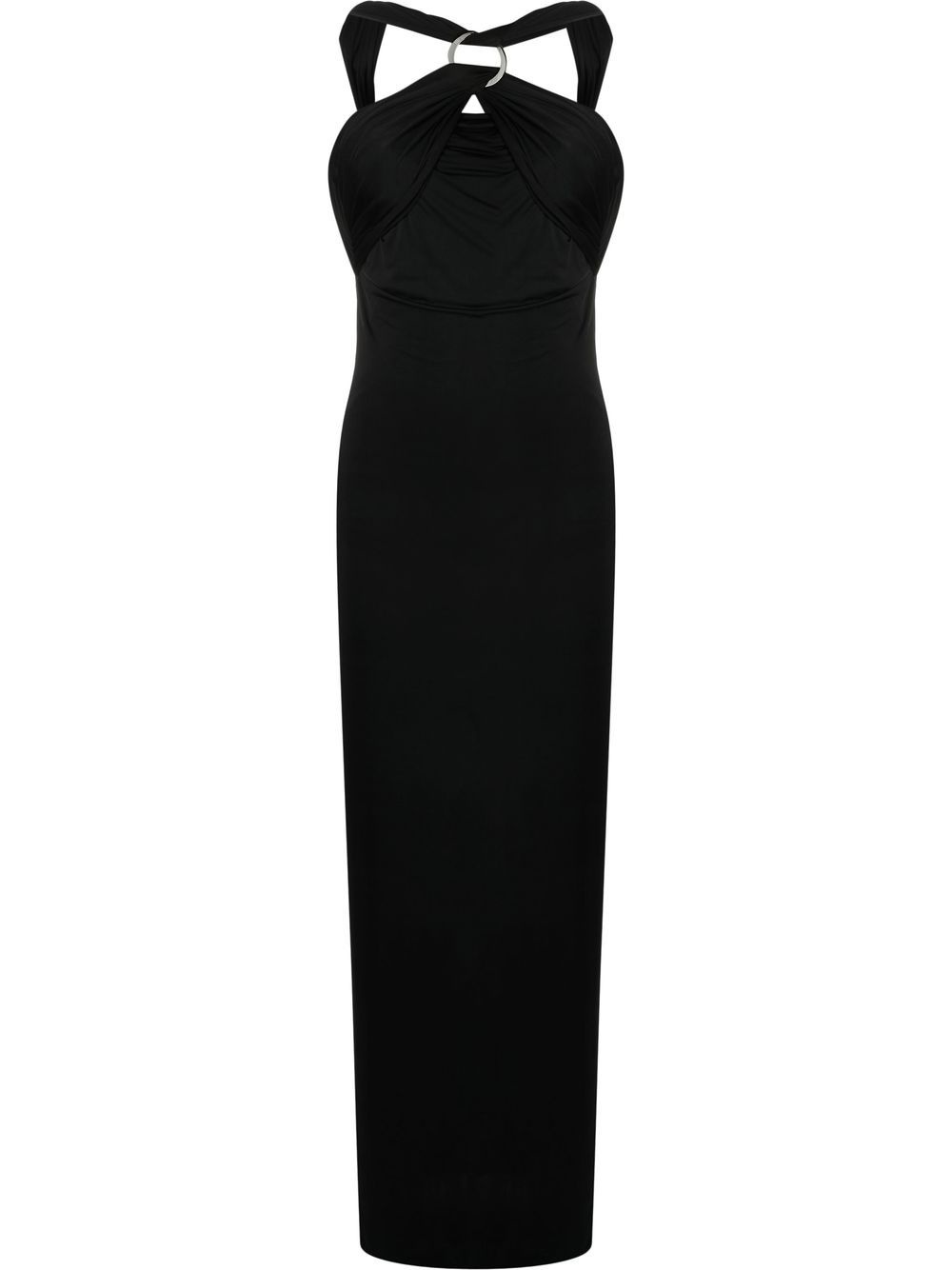 draped halterneck dress The Attico exudes elegance in the design of this floor-length dress, evident in its gracefully draped construction and sophisticated halterneck silhouette. Made in Italy Composition Polyester 95%, Polyamide 5% SIZE & FIT Model measurements Height 5 ft 10 in(1.78 m) Bust/Chest 29.92 in(76 cm) Hips 34.64 in(88 cm) Waist 23.62 in(60 cm) FittingInformation This piece fits true to size. We recommend you get your regular size Designed for a close fit at the bust, waist and hips Made with a mid-weight fabric Washing instructions Machine Wash