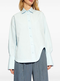 Eliza cotton shirt Highlights - Light blue - Cotton - Straight-point collar - Front button fastening - Drop shoulder - Long sleeves - Buttoned cuffs - Asymmetric hem Made in Italy Composition Cotton 100% SIZE & FIT FittingInformation Designed for a relaxed fit, this piece allows for comfort and movement when worn Made from a midweight non-stretch fabric This piece fits true to size – take your usual size