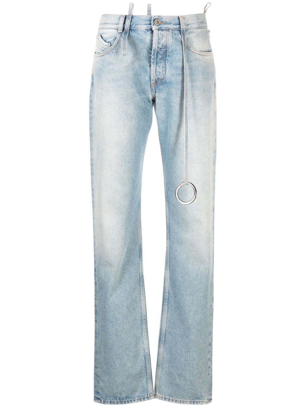 embellished low-rise tapered jeans The Attico’s tapered jeans revamp basic elements unexpected fashion – one belt loop cascades into an O ring-embellished strap while others extend into additional hoops. The coin pocket is pintucked to resemble the brand’s logo. Highlights - Sky blue - Cotton - Light wash - Faded effect - Strap detailing - Ring embellishment - Contrast stitching - Logo-embossed buttons - Pintuck detailing - Embroidered logo to the rear - Button fly fastening - Low-rise - Belt loops - Tapered leg - Classic five pockets - Straight hem Made in Italy Composition Outer: Cotton 100% Lining: Polyester 65%, Cotton 35% SIZE & FIT Model measurements Height 5 ft 11 in(1.8 m) Bust/Chest 32.67 in(83 cm) Hips 36.22 in(92 cm) Waist 24.4 in(62 cm) FittingInformation Designed for a tapered fit, these jeans allow a close fit at the waist and a loose unrestricted fit over the leg with a closer fit towards the ankle Sturdy and hard-wearing, this denim piece offers no stretch This piece fits true to size – take your usual size Washing instructions Machine Wash