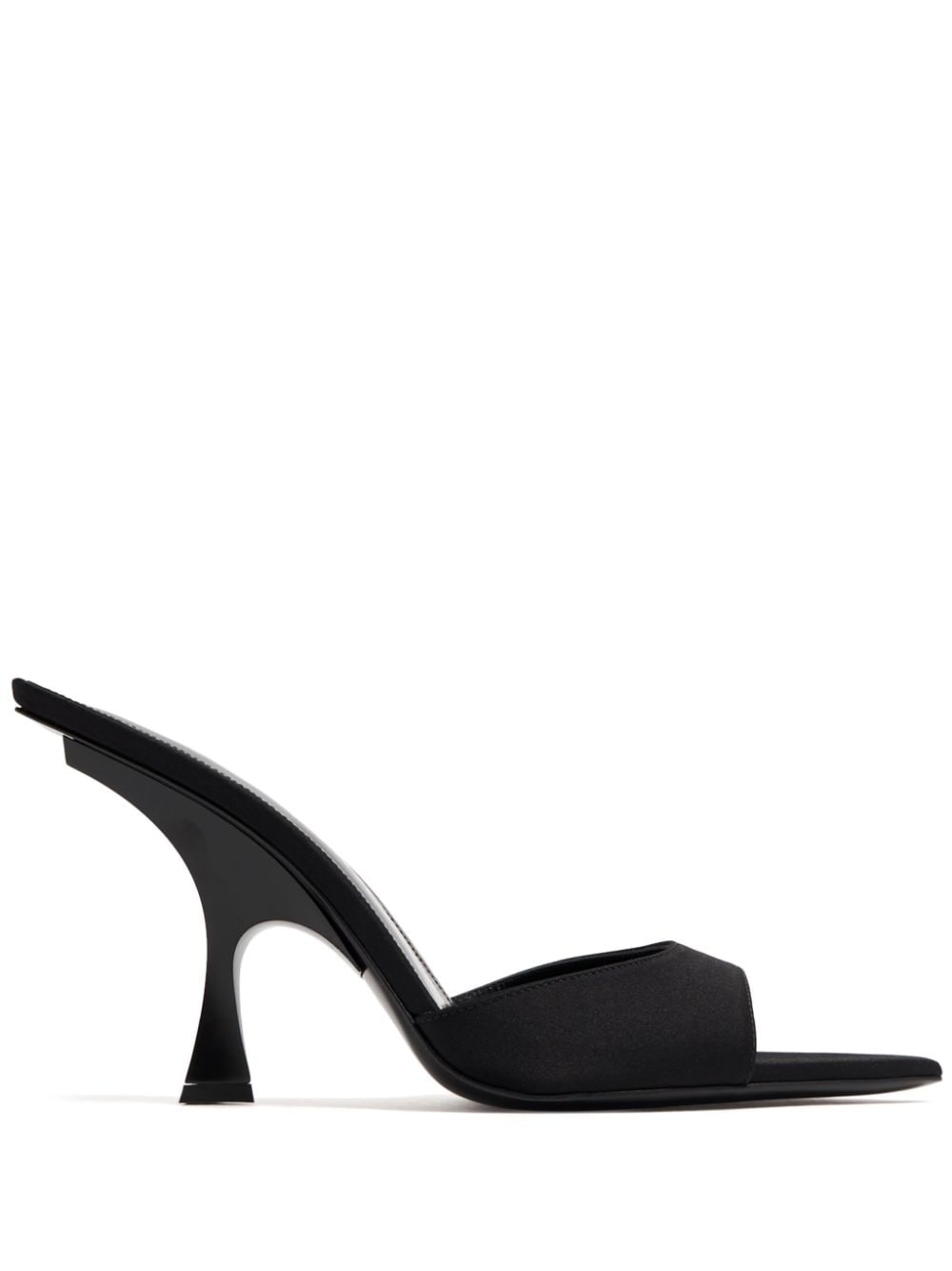 100mm Ester sandals Bold designs underpin The Attico's collections, and these mules are a prime example. Crafted from leather and covered with satin, they're set atop a sculpted, curved heel and finished with a pointed open toe. Highlights - Black - Peep toe - Pointed toe - Square open back - Single toe strap - Branded insole - 100mm high sculpted heel - Leather sole - Slip-on style - This piece comes complete with a protective dust bag. Made in Italy Composition Sole: Leather 100% Lining: Leather 100% Outer: Satin 100% SIZE & FIT Measurement HEEL 3.93 in(10 cm)