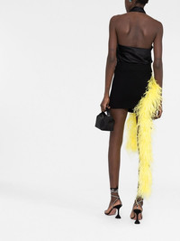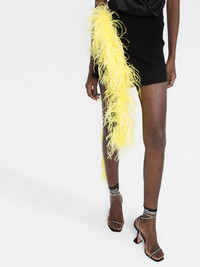 feather-embellished mini skirt The classic boucle texture of this black mini skirt is elevated with bright yellow ostrich feathers draped down its side into a mid-calf length - a testament to The Attico's seamless balance between the traditional and the contemporary. Made in Italy Composition Ostrich Feather 100%, Viscose 70%, Polyester 30% SIZE & FIT Model measurements Height 5 ft 11 in(1.8 m) Bust/Chest 32.67 in(83 cm) Hips 36.22 in(92 cm) Waist 24.4 in(62 cm) FittingInformation This piece fits true to size. We recommend you get your regular size Cut for a slim fit Made with a mid-weight fabric Washing instructions Machine Wash