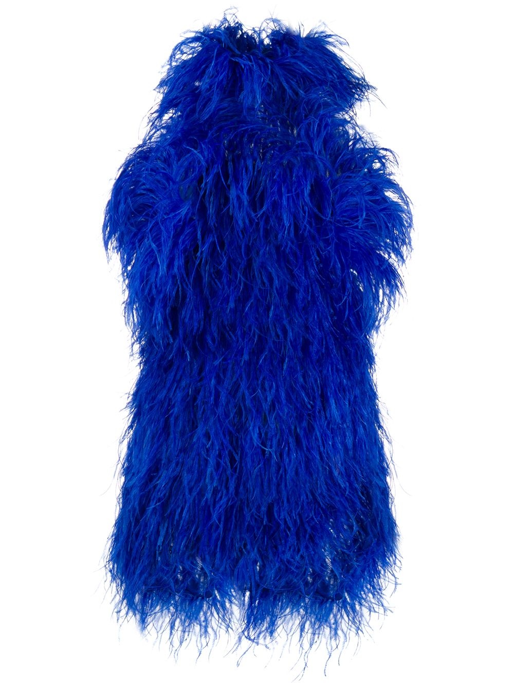 feather mini dress Electric blue feather mini dress from The Attico featuring a textured style, a fitted silhouette, a sleeveless design, a short length and a halter neck. Imported Composition glass 100%, Ostrich Feather 100%, Polyamide 100% SIZE & FIT Model measurements Height 5 ft 9 in(1.74 m) Bust/Chest 32.28 in(82 cm) Hips 35.82 in(91 cm) Waist 24.01 in(61 cm) FittingInformation This piece fits true to size. We recommend you get your regular size Made with a lightweight non-stretch fabric Measurement HIPS 31.88 in(81 cm) LENGTH 31.88 in(81 cm) WAIST 25.98 in(66 cm) BUST 31.88 in(81 cm) Washing instructions Dry Clean Only