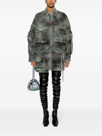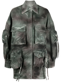 Fern distressed denim jacket Modelled on utilitarian styles, The Attico’s Fern jacket is crafted from camouflage-print denim with a love-worn distressed finish. It’s finished with multiple oversized cargo pockets, echoing the workwear inspiration. Highlights - Olive green - Cotton - Denim - Camouflage pattern - Distressed effect - Straight-point collar - Front press-stud fastening - Drop shoulder - Long sleeves - Press-stud fastening cuffs - Two chest flap pockets - Front flap pocket - Front zip fastening pockets - Sleeve zip pocket - Curved hem Made in Italy Composition Cotton 100% SIZE & FIT Model measurements Height 5 ft 10 in(1.77 m) Bust/Chest 33.07 in(84 cm) Hips 37 in(94 cm) Waist 24.8 in(63 cm) Measurement SLEEVE LENGTH 19.09 in(48.5 cm) HIPS 48.81 in(124 cm) WAIST 55.11 in(140 cm) FittingInformation Designed for an oversized fit, offering additional room throughout Made from a midweight non-stretch fabric This piece fits true to size – take your usual size
