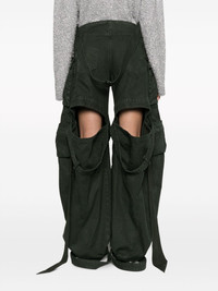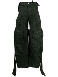 Fern low-rise cargo pants The Attico’s cargo pants are an exaggerated take on classic Y2K styles. They’re crafted from ivy-green cotton to a wide-leg silhouette that tapers at the ankles and are finished with multiple pockets that enhance their balloon-like shape. Cut-outs at the back add an unexpected twist. Highlights - Ivy green - Cotton - Multiple cargo pockets - Low-rise - Belt loops - Classic five pockets - Concealed fly and button fastening - Strap detailing - Curved legs Made in Italy Composition Lining: Cotton 100% Outer: Cotton 100% SIZE & FIT Model measurements Height 5 ft 11 in(1.8 m) Bust/Chest 30.7 in(78 cm) Hips 35.03 in(89 cm) Waist 24.4 in(62 cm) FittingInformation Designed with a wide-leg cut, these trousers allow for a close fit at the waist and offer a loose and roomy fit over the leg The adjustable tabs allow for fitted preferences Made from a midweight non-stretch fabric This piece fits true to size – take your usual size Washing instructions Hand Wash