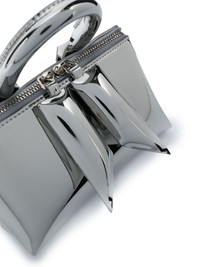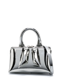 Friday mini tote bag The Friday mini tote's geometric silhouette is a play on The Attico's trademark triangular motif. In keeping with the label's high-octane mood, it's crafted from silver mirror-effect faux leather with a top handle and a detachable, adjustable shoulder strap. Highlights - Silver-tone - Faux leather - Single top handle - Top zip fastening - Adjustable detachable shoulder strap Made in Italy Composition Outer: Polyurethane 100% SIZE & FIT Model measurements Height 5 ft 11 in(1.8 m) Bust/Chest 31.49 in(80 cm) Hips 36.41 in(92.5 cm) Waist 25.59 in(65 cm) Measurement DEPTH 4.33 in(11 cm) HANDLE 3.54 in(9 cm) HEIGHT 4.33 in(11 cm) STRAP 20.07 in(51 cm) WIDTH 7.28 in(18.5 cm)