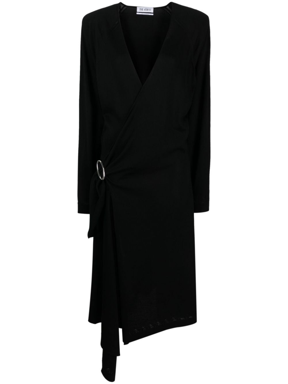 front-slit long-sleeved wrap dress Highlights - Black - Wool - Wrap design - V-neck - Side tie fastening - Long sleeves - Front slit - Mid-calf length - Asymmetric hem Made in Italy Composition Lining: Acetate 60%, Viscose 40% Outer: Wool 100% SIZE & FIT Model measurements Height 5 ft 10 in(1.77 m) Bust/Chest 32.67 in(83 cm) Hips 35.43 in(90 cm) Waist 23.62 in(60 cm) FittingInformation Designed for a slim fit that sits just away from the body offering a close yet comfortable fit The internal shoulder pads offer a structured shape Made with a midweight knit, this piece offers some stretch This piece fits true to size – take your usual size