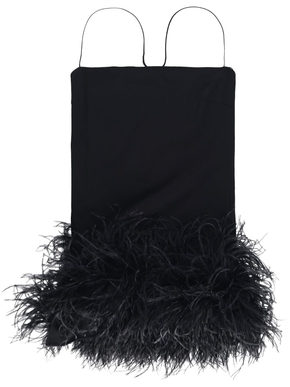 Fujiko feather-trim minidress The Attico's remarkable taste is reflected in this Fujiko minidress. Rendered in black, it is cut to a fitted silhouette adorned with thin straps and a logo metal ring. At the bottom, a feather trim gives the garment a nostalgic feel. Highlights - Black - Ostrich feather - Thin shoulder straps - Logo plaque - Crossover strap detail - Concealed rear zip fastening - Feather detailing - Thigh-length Made in Italy Composition Ostrich Feather 100%, Rayon 68%, Polyamide 27%, Spandex/Elastane 5% SIZE & FIT Measurement HIPS 35.43 in(90 cm) LENGTH 29.52 in(75 cm) WAIST 26.77 in(68 cm)