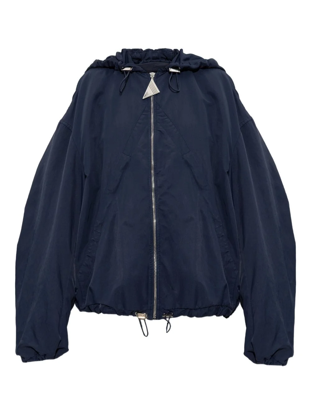 hooded jacket Highlights - Dark blue - Triangle detail - Zip fastening - Elasticated hem - Drawstring hood Imported Composition Polyamide 100% Washing instructions Read Manufacturer Guidelines